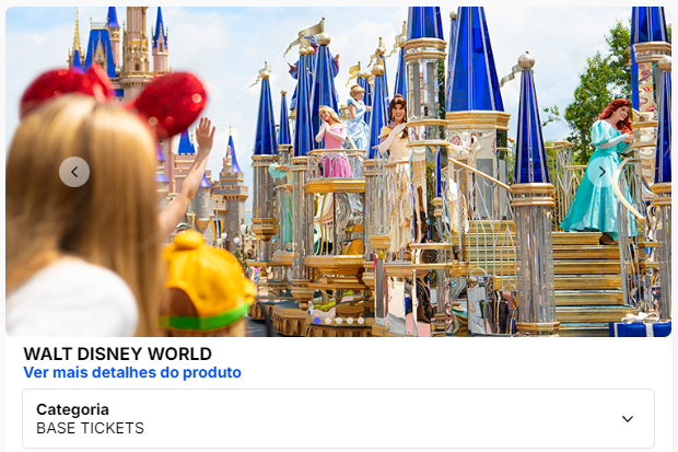 A plataforma oferece diversos destinos, por isso precisamos filtrar para a terra do Mickey.